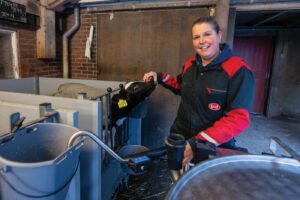 ‘Automatisering past ons wel’, vertellen Menno en Vera. ‘We waren per dag wel 2,5 uur aan het voeren, waren € 20.000 aan diesel kwijt elk jaar terwijl de windmolen en de zonnepanelen energie te veel produceerden. Eigenlijk was het rekensommetje snel gemaakt.’ Zelfs met een voermengwagen die pas drie jaar oud was. ‘Daar stond ook nog eens een trekker voor die 1.000 uur per jaar maakte.’